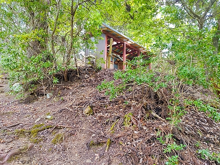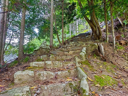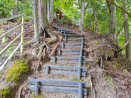 道から急な階段。