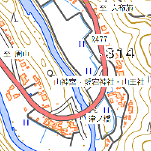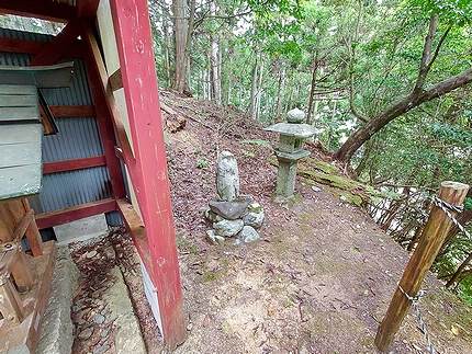 下黒田塩野集落、津ノ橋の畔に参道がある。