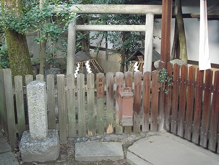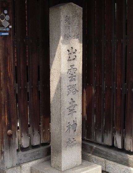 | 鳥居に隠れるようにしてある「皇城鬼門除 出雲路幸神社《の石碑。 | ![]() |